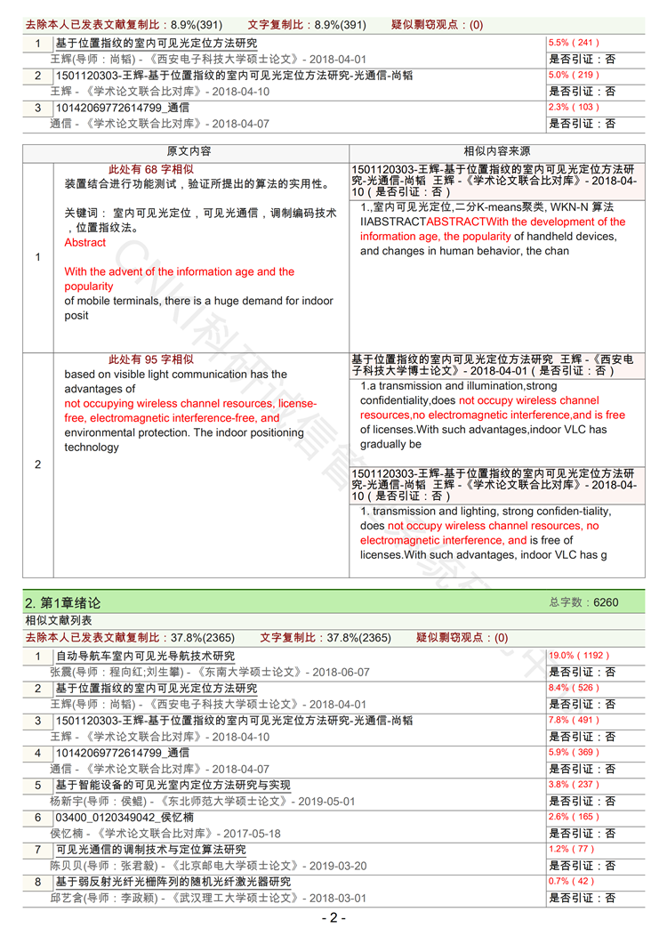 3、全文对照:详细列出抄袭内容来源,可以看到与那些文献重复。